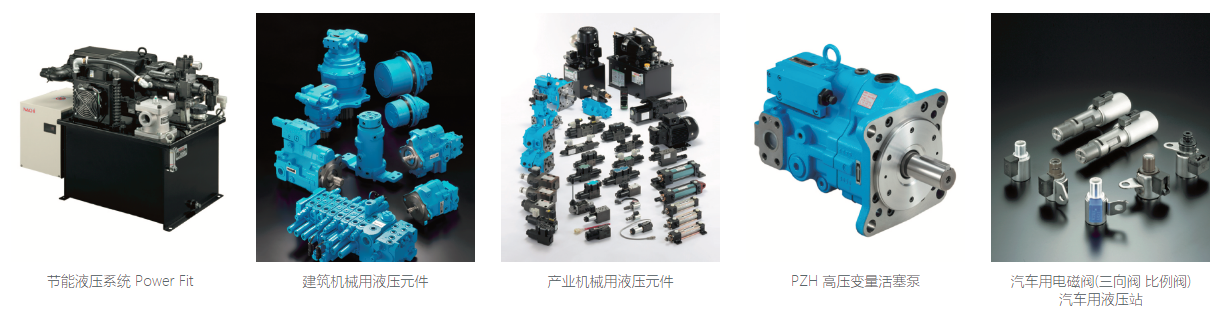 NACHI不二越油泵公司主要生产液压产品有:PVS变量柱塞泵、PZS变量柱塞泵、PZ负荷感应变量柱塞泵、PZH高压变量柱塞泵、VDS变量叶片泵、VDR22变量叶片泵、VDR13变量叶片泵、VDC高压变量叶片泵、IPH内啮合齿轮泵、IPH双联内啮合齿轮泵,液压阀产品有:叠加阀、电磁阀、压力控制阀、流量控制阀、方向控制阀、电磁控制阀、逻辑复合阀、电气液压伺服阀,油缸,液压泵站等。