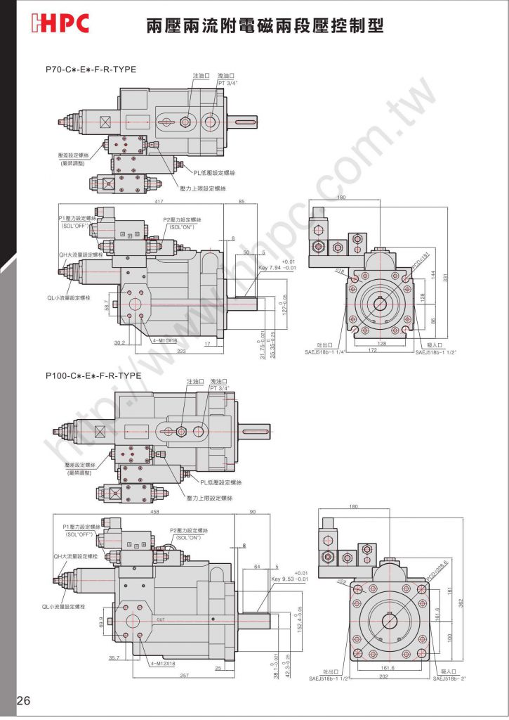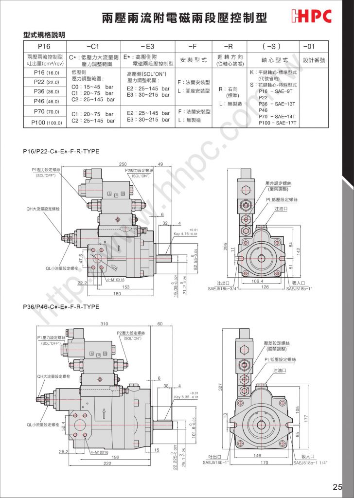 两压两流的控制功能,系统压力超过PL的压力设定值以上时,泵浦自动转变为QL值的小流量。