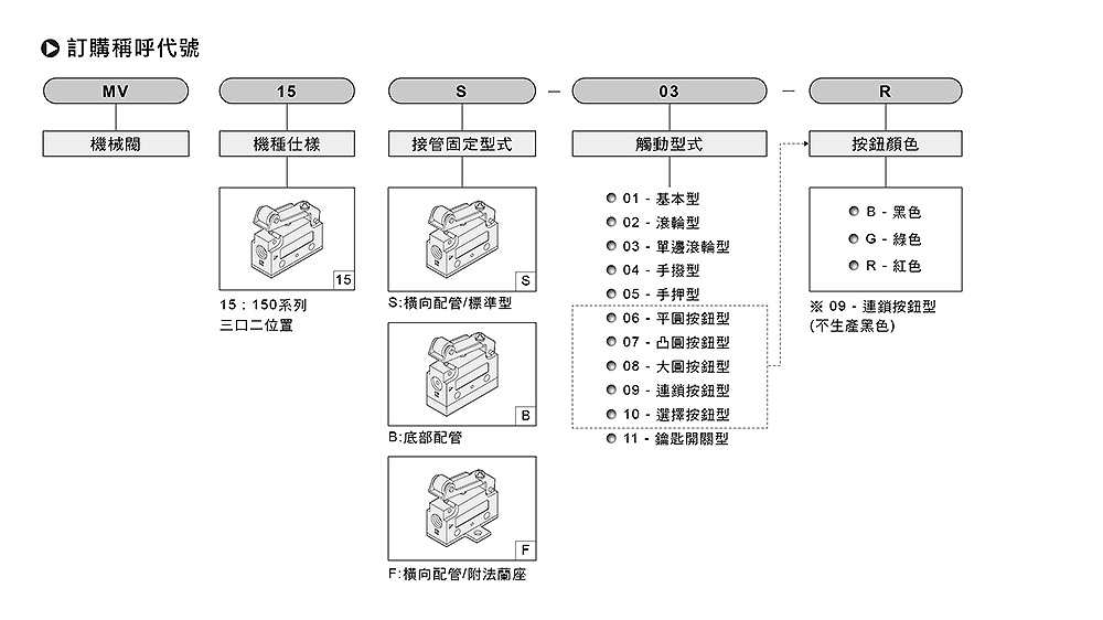 作动型式三口二位,接管固定型式有横向配管、底部配管,可依需求进行选择。