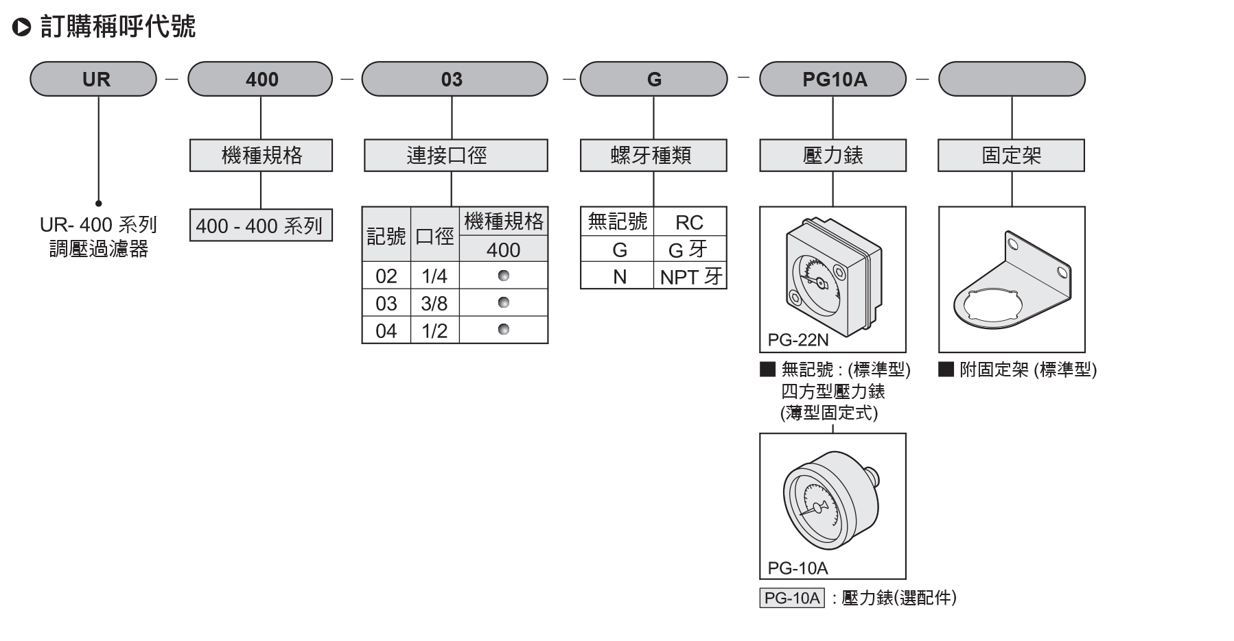 使用流体 空气,配管口径尺寸 Rc 1/4、Rc 3/8、Rc 1/2,最大使用压力 10 kg/cm2,使用压力范围 0.5~8.5 kg/cm2,周围温度 5~60℃。